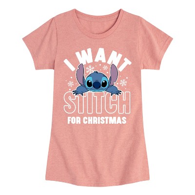 Lilo & Stitch - Holiday Mischief - Girls Fitted Short Sleeve Tee - Celebrate the ohana with Lilo & Stitch graphic apparel, blending new visuals with classic heartwarming moments featuring Lilo, Stitch, and the bonds of family.