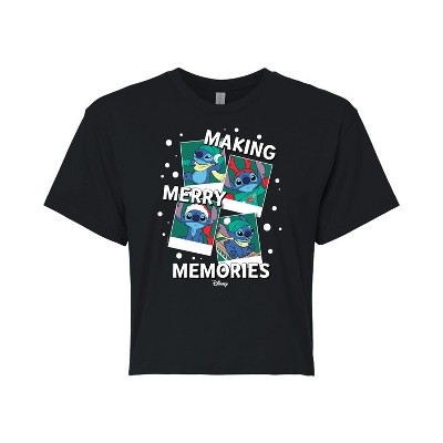 Lilo & Stitch - Making Merry Memories - Girls Fitted Short Sleeve Tee - Celebrate the ohana with Lilo & Stitch graphic apparel, blending new visuals with classic heartwarming moments featuring Lilo, Stitch, and the bonds of family.