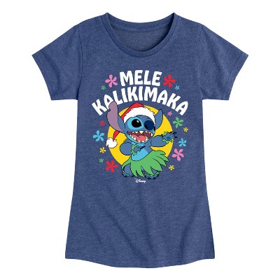 Lilo & Stitch - Mele Kalikimaka - Girls Fitted Short Sleeve Tee - Celebrate the ohana with Lilo & Stitch graphic apparel, blending new visuals with classic heartwarming moments featuring Lilo, Stitch, and the bonds of family.