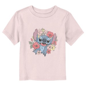 • The smallest family members are also the most stylish with this new toddlers' t-shirt that is perfect for every occasion! Featuringa cute, distressed design of Stitch surrounded by colorful flowers across the front.