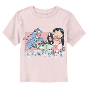 • The smallest family members are also the most stylish with this new toddlers' t-shirt that is perfect for every occasion! FeaturingLilo and Stitch enjoying their favorite tunes on a record player and the classic movie logo below.