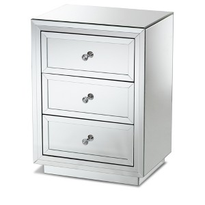 Lina Mirrored 3 Drawer Nightstand Bedside Table Silver - BaxtonStudio: Contemporary Style, MDF Construction, No Assembly Required