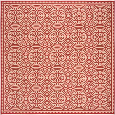 Linden LND128 Power Loomed Area Rug - Red/Creme - 6'7"x6'7" - Safavieh