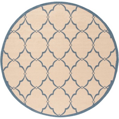 Linden LND129 Power Loomed Area Rug - Cream/Blue - 6'7" Round - Safavieh