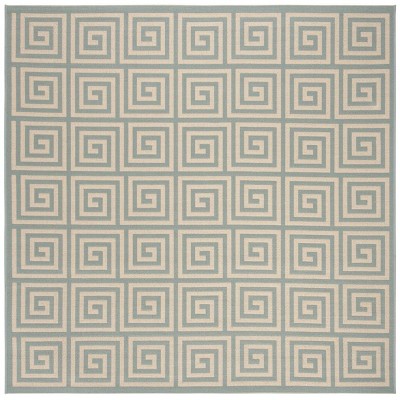 Linden LND132 Power Loomed Indoor/Outdoor Area Rug - Cream/Aqua - 6'7"x6'7" - Safavieh