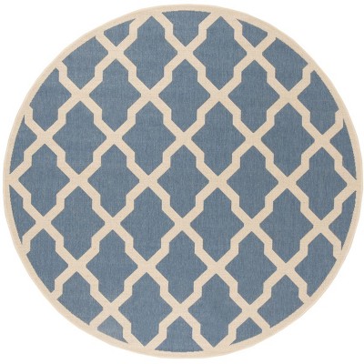 Linden LND171 Power Loomed Indoor/Outdoor Area Rug - Blue/Creme - 6'7" Round - Safavieh