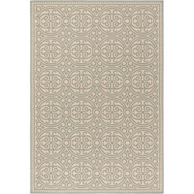 Linden LND174 Power Loomed Indoor/Outdoor Area Rug - Aqua/Cream - 5'3"x7'6" - Safavieh