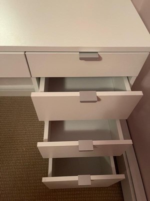 [This review was collected as part of a promotion.] I love the wide mirror, the drawers are perfect and have lots of space and depth. I will say most parts weren’t labeled so that’s frustrating when assembling but once assembled you’ll love it.