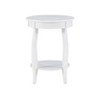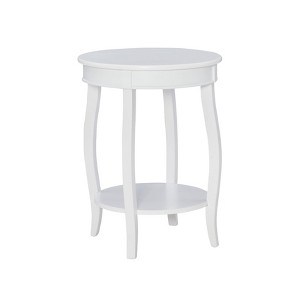In a contemporary round design with a little classic inspiration, this 24" high table can enhance any room. Use as a bed stand or pair with a chair or sofa. The round lower shelf offers open storage for gaming controls, books, coasters, or whatever fits. Cabriole tapered legs and a lovely white finish add some elegance, and solid wood legs with MDF top and panel, ensure the table is robust. From bedroom to family room, this table adds function and style wherever placed!