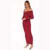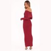 Turn heads and make a statement in the Lindsey Knit Dress in Dark Red. Designed with an off-shoulder silhouette and a fold-over straight neckline, this midi-length bodycon dress exudes effortless sophistication.