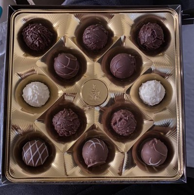 - Assorted Milk Chocolate, White Chocolate, Fudge Swirl, Caramel Dark Chocolate and Dark Chocolate truffles