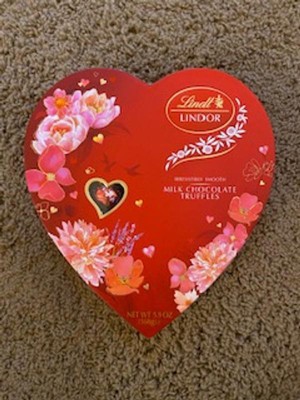 - 5.5 oz. of Lindt LINDOR Valentine's Milk Chocolate Truffles Heart