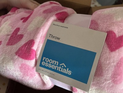 Printed Plush Throw Ivory/Pink/Red - Room Essentials™
