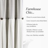 Add the look of linen to your to your home with the Linen Button Shower Curtain. Featuring a pleated color block design and coconut button details, this charming bath curtain adds style and texture to your home. This bathroom curtain is crafted from a linen-textured cotton fabric blend of 52% Polyester, 37% Cotton, and 8% Viscose. The coconut husk button details add a handcrafted, rustic feel your space. These fabric shower curtains for bathroom are the perfect addition to your modern farmhouse, country, or coastal styled bathroom. Sold as a single bath curtain, this extra long shower curtain measures 72" W x 78" L. The 12 button holes at the top of this shower curtain make it easy to hang with hooks or rings, ensuring a simple installation process. Because this is a fabric shower curtain, we recommend pairing it with a liner, sold separately. Caring for this cotton shower curtain is easy, simply machine wash cold on the gentle cycle, and tumble dry on low. If needed, use an iron on low heat to remove wrinkles or a non-chlorine bleach for cleaning.