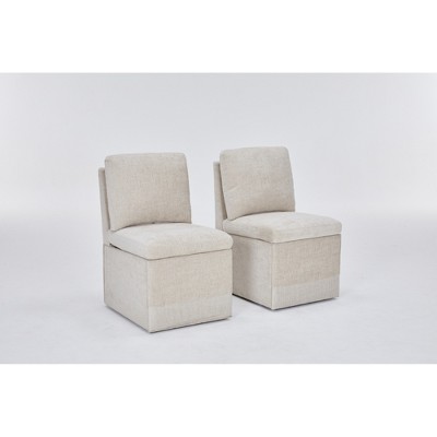 Linen Upholstered Side Chair with Tufted Back and Cushioned Seat for Dining or Living Set of 2