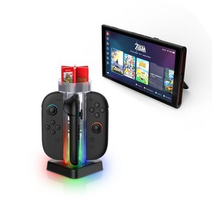 Power up your gaming experience with the Link 4-in-1 Fast Charging Dock – an all-in-one solution built exclusively for the Nintendo Switch 2. Designed with efficiency, style, and convenience in mind, this compact dock not only charges your console and accessories quickly, but also adds a futuristic touch to your setup with intuitive touch controls and dynamic LED lighting. All-in-One Charging & Display StationCharge up to four devices simultaneously — including your Nintendo Switch 2 console and up to three accessories (Joy-Cons, Pro Controllers, or other USB-C gear). Whether you're preparing for a long gaming session or just keeping your gear topped up, this dock delivers fast, stable charging every time. Touch Control & LED Light EffectsEasily toggle LED lighting modes with a simple touch — perfect for customizing your gaming space with ambient light. The soft-glow LED ring indicates charging status and adds a modern, high-tech look to your setup, even in low-light environments. Compact, Sleek & Travel-FriendlyCrafted with a matte black finish and minimal footprint, the Link 4-in-1 Dock fits seamlessly into any gaming environment. It’s lightweight, durable, and easy to pack — ideal for travel, tournaments, or compact gaming desks.