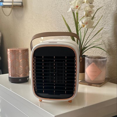 Link Portable Electric Desk and Countertop Quiet Ceramic Space Heater Multi Heat Settings For Office, Home, Bedroom & More - Green/Gold