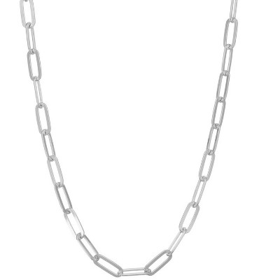 Product Name: Links of Italy Sterling Silver 3.2mm Paper Clip Chain - Rhodium Plated - Silver - 18 Inch - paper clip necklace, linked necklace, linked chain, pendant chain, statement chain, gold