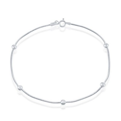 Links of Italy Sterling Silver 4mm Puffed Marina Anklet - Rhodium Plated - Silver - 9 Inch - 1 of 3