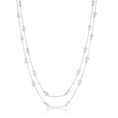 Product Name: Links of Italy Sterling Silver Half Curb & Square Beads by the Yard Chain - Silver - 16 Inch - beaded, square bead, beads, square, by the yard, curb, link, chain, double chain, multi chain