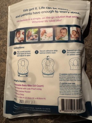 - Convenient 10 pack disposable bibs for on-the-go feeding