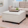 Elevate your living space with the timeless elegance and functional charm of the Linon Madeleine Square Storage Ottoman in Natural. Thoughtfully designed to combine storage, seating, and style, this multifunctional piece is a true space-saver. The generously padded, tufted top opens to reveal ample hidden storage—perfect for stashing away blankets, pillows, or living room essentials. Wrapped in a soft, light beige linen-weave upholstery made of durable 100% polyester, it’s built to stand up to daily use while maintaining its refined appearance. Whether you're furnishing a small apartment or refreshing your family room, this ottoman adds both comfort and convenience to your home.