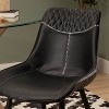 Transform your dining space with the Linon Elder Dining Chairs in Black, Set of 2—where modern design meets everyday functionality. These statement-making chairs feature a sculptural silhouette with high backrests and slender black metal legs that exude minimalist sophistication. The frame is expertly crafted from durable bentwood, creating a subtle curvature that offers both ergonomic support and visual appeal. Wrapped in smooth black faux leather and accented with crisp white baseball stitching, each chair offers a polished look that’s effortlessly chic and incredibly versatile.