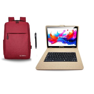 LINSAY® 10.1" Octa Core 256GB STORAGE Android 15 BUNDLE with SAND DESIGNER CLOTH KEYBOARD CASE and STYLISH COMPACT BACKPACK