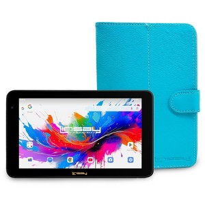 Product Name: LINSAY 7" Tablet 128GB Storage Bundle with Light Blue Leather Case Android 15