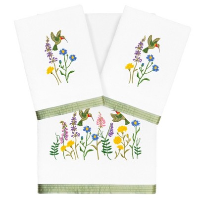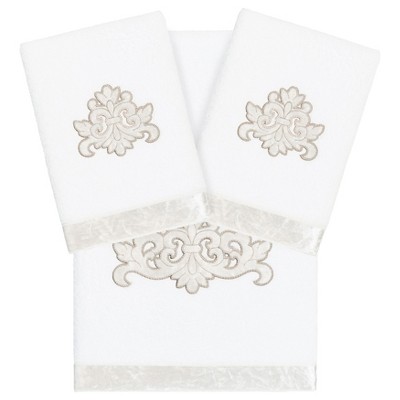 Linum Home Textiles 100% Turkish Cotton GIRASOL 3PC Embellished Towel Set-White-1 Pc Bath 2 Pcs Hand Towel