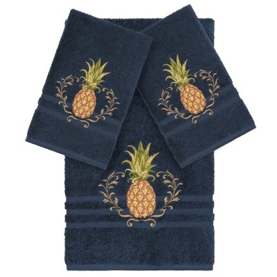 Linum Home Textiles 100% Turkish Cotton KHLOE Embellished Towel Set - Midnight Blue - 1 Pc Bath 2 Pcs Hand Towel