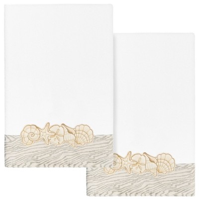 The MIA Embellished Towel Collection features metallic sea turtles embroidered on a lustrous pleated border.