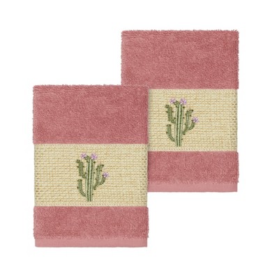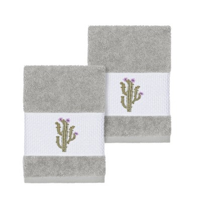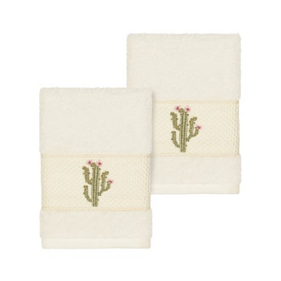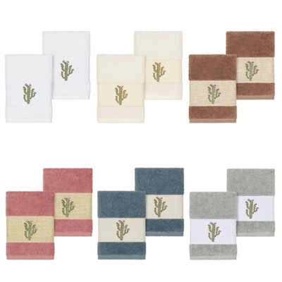 The MILA Embellished Towel Collection features whimsical blooming cactus in applique embroidery on a woven textured border. These soft and luxurious towels are made of 100% premium Turkish Cotton and offer lasting absorbency and superior durability.