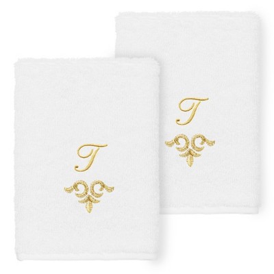 Linum Home Textiles 100% Turkish Cotton MONICA 2PC Embellished Washcloth Set - White - T