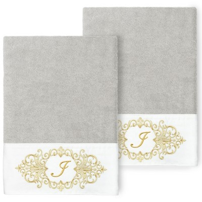 The Monica Embellished Towel Collection features an elegant metallic crest motif with your monogram embroidered on a crisp white border. These soft and luxurious towels are made of 100% premium Turkish Cotton and offer lasting absorbency and superior durability.