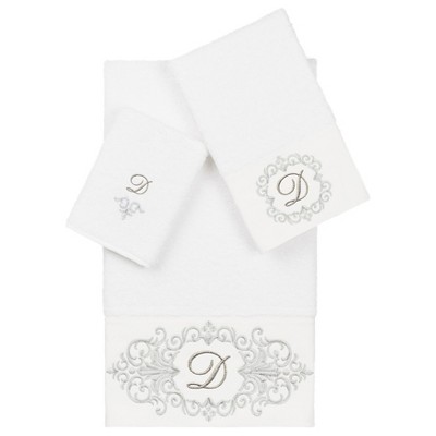 The Monica Embellished Towel Collection features an elegant metallic crest motif with your monogram embroidered on a crisp white border. These soft and luxurious towels are made of 100% premium Turkish Cotton and offer lasting absorbency and superior durability.