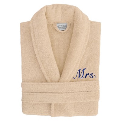 Linum Home Textiles 100% Turkish Cotton Terry Bath Robe Embroidered with Snowman Design - Beige - Large/XLarge