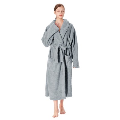 Linum Home Textiles 100% Turkish Cotton Unisex Personalized Herringbone White Bathrobe in Grey Chancery Font