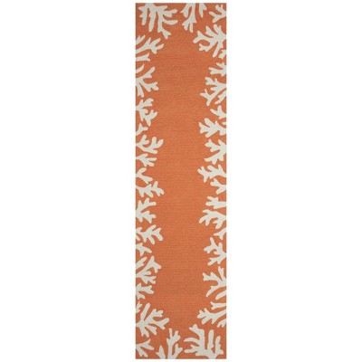 This hand-hooked area rug features a vibrant navy blue background with a white coral motif border. A classic, subtle tropical motif, this rug will effortlessly compliment any space inside or outside your home. Made in China from a polyester acrylic blend, the Capri Collection is hand tufted to create bright multi-toned detailed designs with a high-quality finish. The material is flatwoven, weather resistant and treated for added fade resistant making this the perfect rug for indoor or outdoor placement. This soft, durable piece is ideal for your patio, sunroom and those high traffic areas such as your entryway, kitchen, dining room and living room. A fresh take on nautical decor, these area rugs range in style from coastal to tropical motifs that beautifully accent your home decor. Limiting exposure to rain, moisture and direct sun will prolong rug life.
