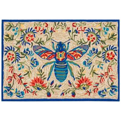 Add some good luck to your home with these 3 lucky ladybugs on a beautiful white garden flower, in green. Hand hooked of weather-resistant fiber, this collection is a blend of comfort, softness and durability. Frontporch is remarkably easy to clean and treated for added fade resistance. Limiting exposure to rain, moisture and direct sun will prolong mat life.