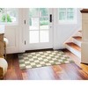 The Checkerboard design features a geometric motif and modern style in a ivory and green palette.