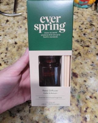 [This review was collected as part of a promotion.] This Ever Spring Reed Diffuser in fragrance Cedar & Balsam is really nice. Easy to assemble and smells really good like essential oils. I don’t know how strong it will be as I know it takes some time for the oil to diffuse through the reeds. But so far the smell is a good amount, not overwhelming. It also looks nice with the dark glass. I’m looking forward to enjoying the scent moving into the holidays I received an incentive to write this review.