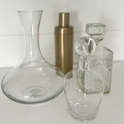 You'll love showing off and serving your prized wine in this Liquor Glass Decanter with Stopper from Threshold™. The glass decanter is topped with a spherical stopper to strike a stunning silhouette whether you keep it in your home bar for storing wine and spirits or use it for holding water, juice and other beverages on your dining table. For added convenience, the glass vessel cleans up easily in the dishwasher when your cocktail hour is complete.
