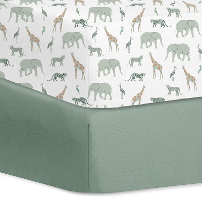 Our set includes 2 piece crib sheet (28" x 52"/71 x 133cm). The form-fitting design with stretchy 360-degree elastic ensures a comfortable, secure fit on your baby's mattress. It's easy to put on and stay in place even when baby rolls or crawls.