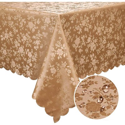LISM 55 x 86 Inch Embroidered Waterproof Tablecloths,Cotton Linen Wrinkle Free Anti-Fading Table Cover,Light Brown