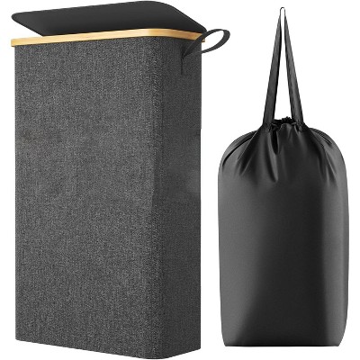 LISM Slim Laundry Basket with Lid,Narrow Laundry Hamper with Removable Bag and Handles