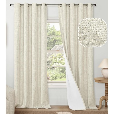 LISM Boho Sheer Curtains,Light Filtering Linen Blend Curtains with Hooks 2 Panels Set