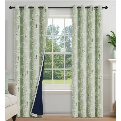 - Elegant sage green sheer valances with delicate jacquard leaf texture.