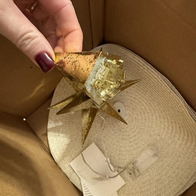 Ughh… I ordered this twice as it was out of stock in store. First time, both the large and small star were shipped separately and were both shattered. They shipped both stars out again and they were shipped separately and I received them broken and parts of one of thee stars was missing several of the “points” also . They were clearly not packed well. Unfortunately this is not the first time I have received shattered items. Last year, during the Christmas season also, I ordered a large order and all of the more fragile items were shattered to literal shards. I love me some Target, but if it is not available in store, I probably will just forgo ordering anything on the more delicate side. On the upside… Target’s customer service is always responsive and kind.:)