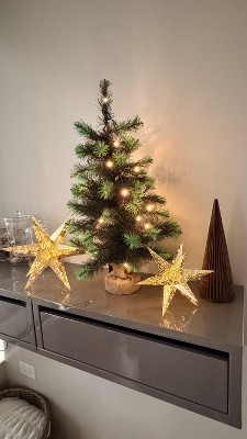 Brighten up your seasonal decor with this Lit Tabletop Star from Threshold™. Made from plastic, this tabletop decor showcases a sparkly star that lights up for a stunning look. Display the lit star on your mantel, console table or as a centerpiece on your dining table to instantly spruce up your space with festive shine.